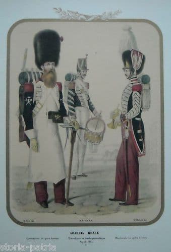 Stampa Uniformi Borboniche: Guardia Reale, Musicante, Napoli, 1852