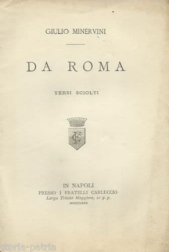 Giulio Minervini: Da Roma, Versi Sciolti. Napoli, 1880. Rara Edizione