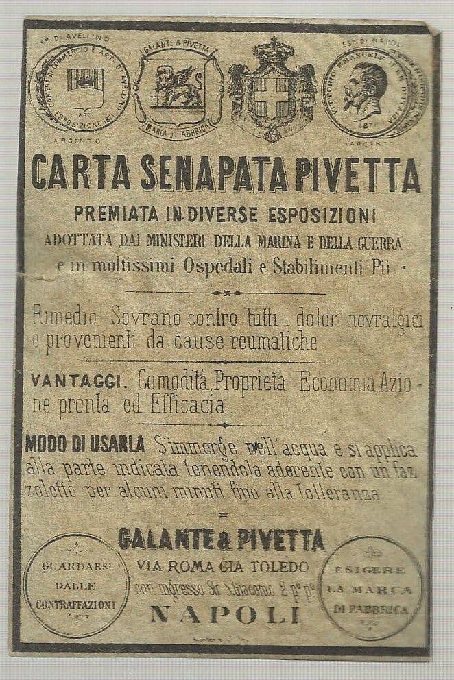 Carta Senapata Pivetta Napoli Fine '800 Galante Pubblicità Medica