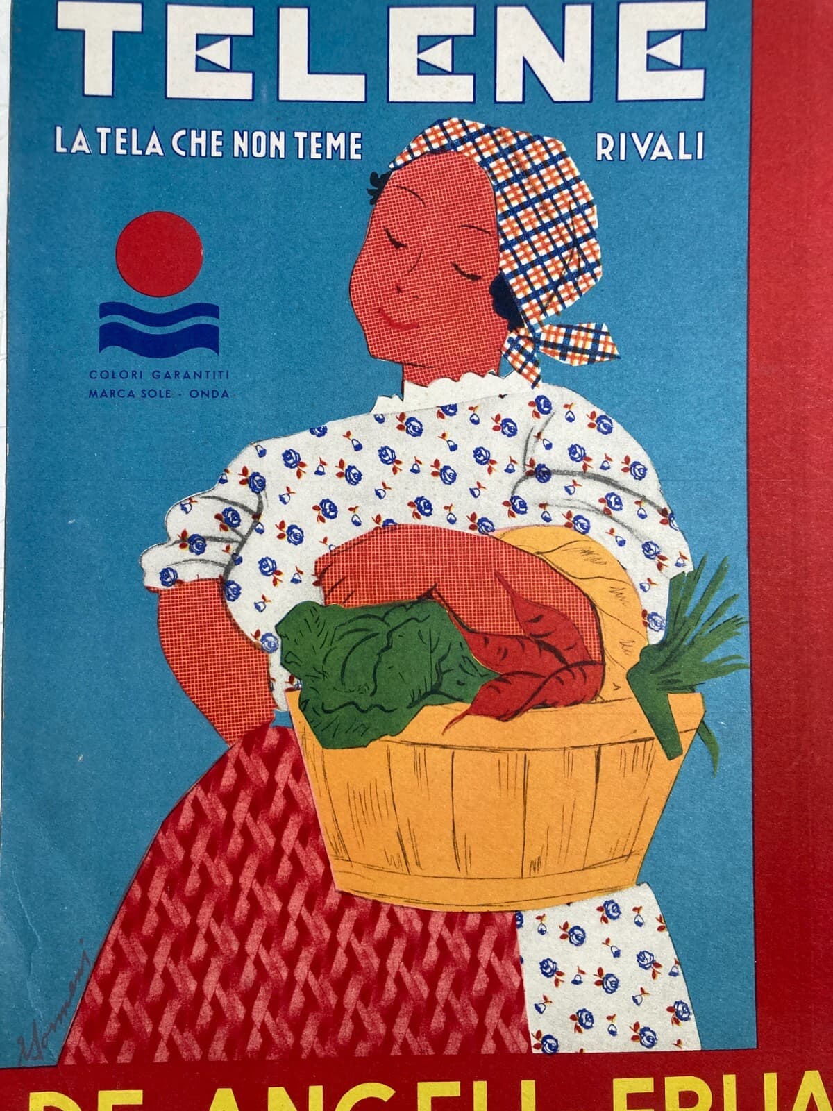 Tessuti, Abbigliamento, Telene De Angeli Frua Cartello Pubblicitario, 1938
