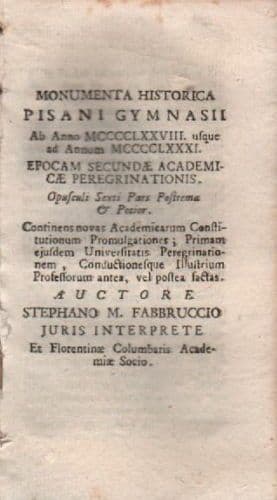 Monumenta Historica Pisani Gymnasii 1478 1481 Stefano Fabbruccio