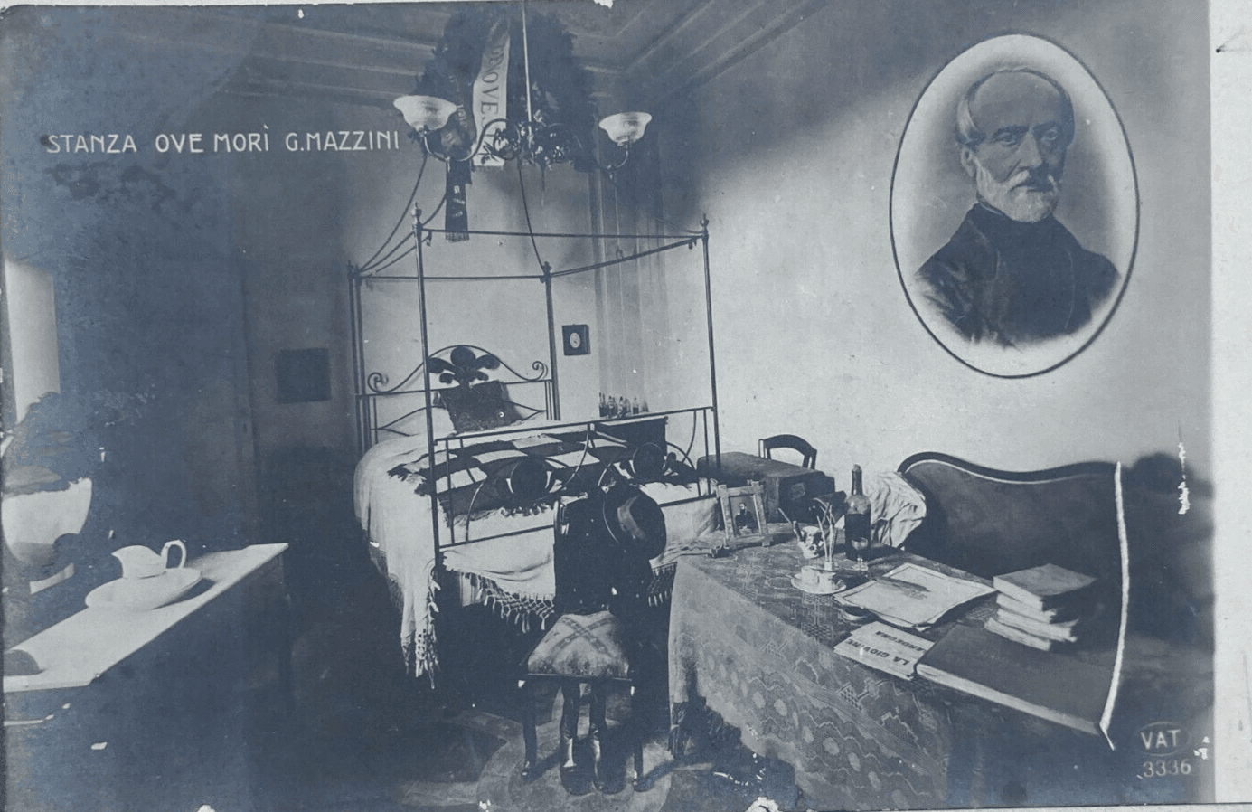 Risorgimento, Massoneria, Mazzini: Fotocartolina Del Ritratto E Della Stanza Del Decesso