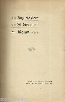 Puglia, Barletta: Teatro Curci, Massoneria E Loggia Massonica. Discorso Di Augusto Cerri Su Roma E Garibaldi, 1909