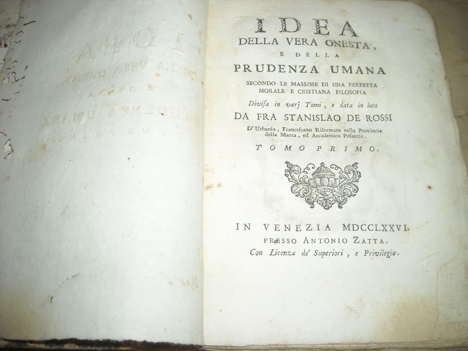 Marche, Pesaro: Idea Della Vera Onestà E Della Prudenza Umana, De Rossi, Araldica, Settecento