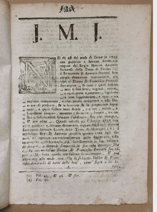 Notariato, Napoli, Forino: Eredità Perrotti E Controversia Giuridica, 1784