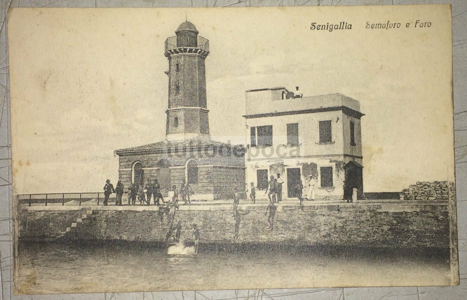 Marche, Senigallia: Animata Veduta Del Porto Con Faro E Tuffi In Mare. Cartolina, 1928