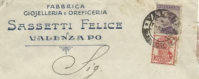 Filatelia Antica, Affrancatura Postale Singer, Oreficeria Sassetti, Valenza Po, 1925