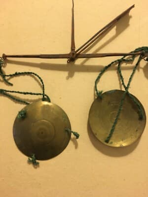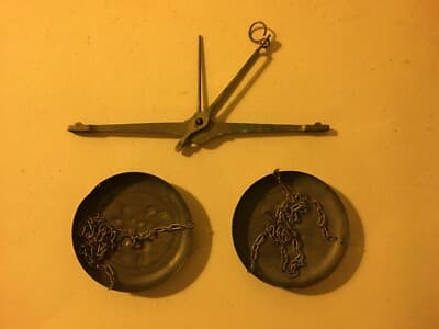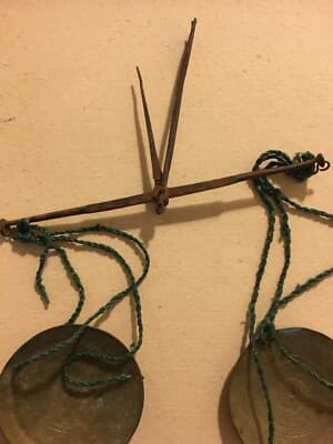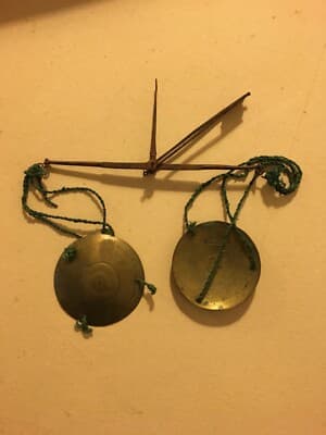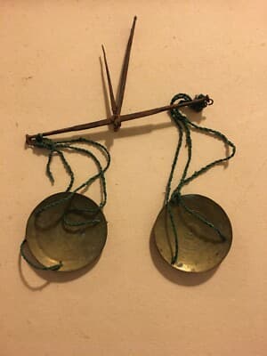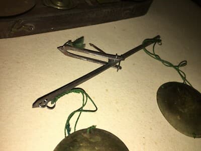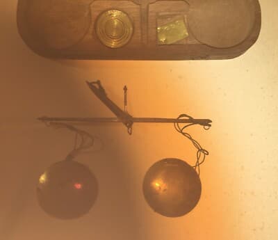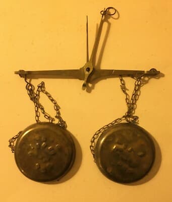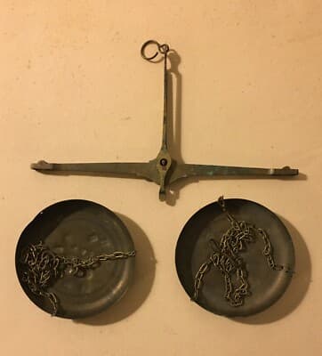 Farmacia, Numismatica E Oreficeria: Antica Bilancia Con Piattini Punzonati In Ottone