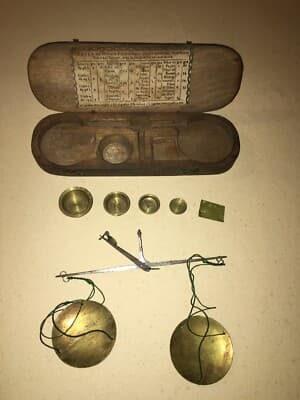 Oreficeria, Numismatica, Farmacia, Antica Bilancia Con Astuccio E Pesi