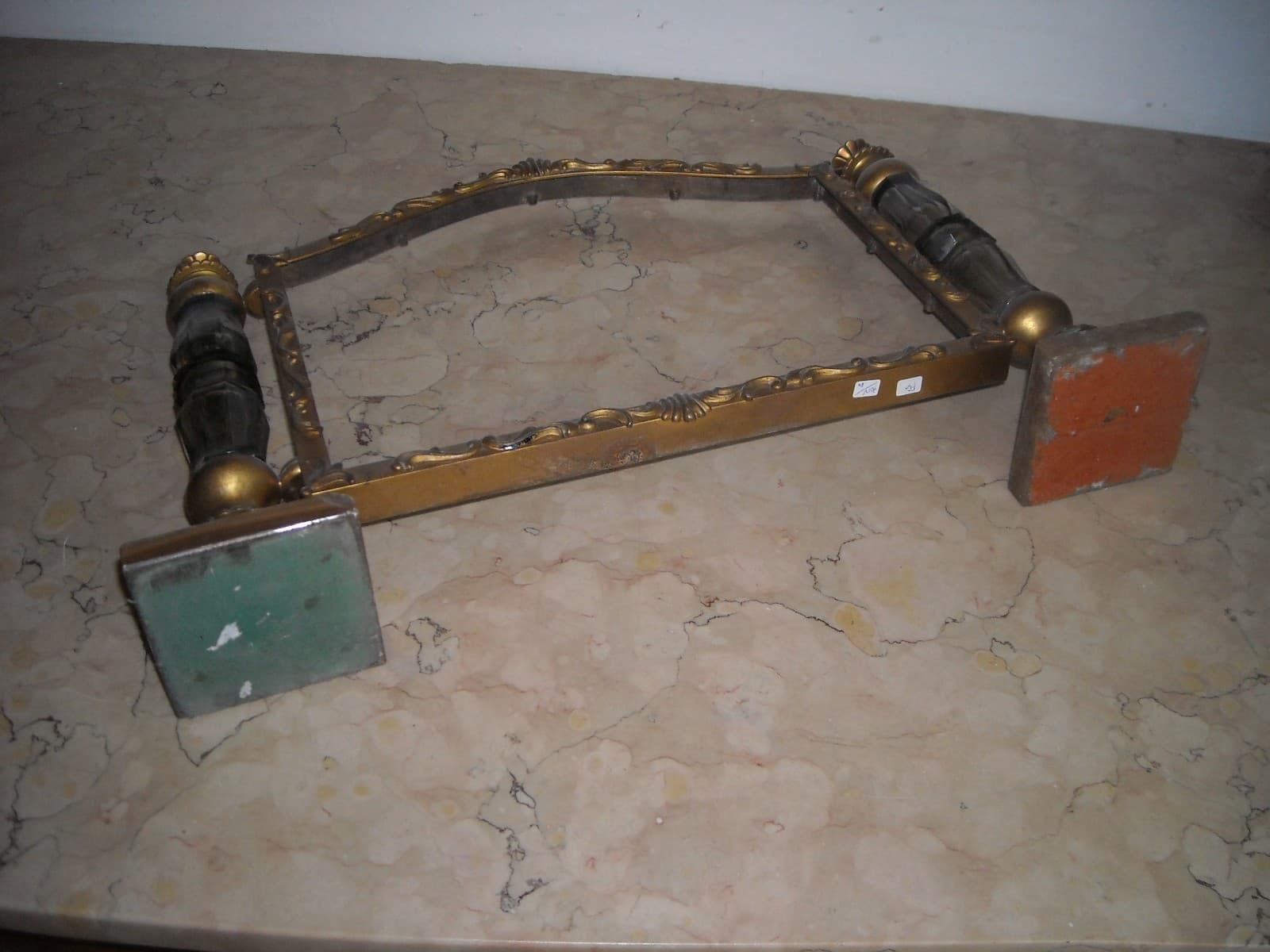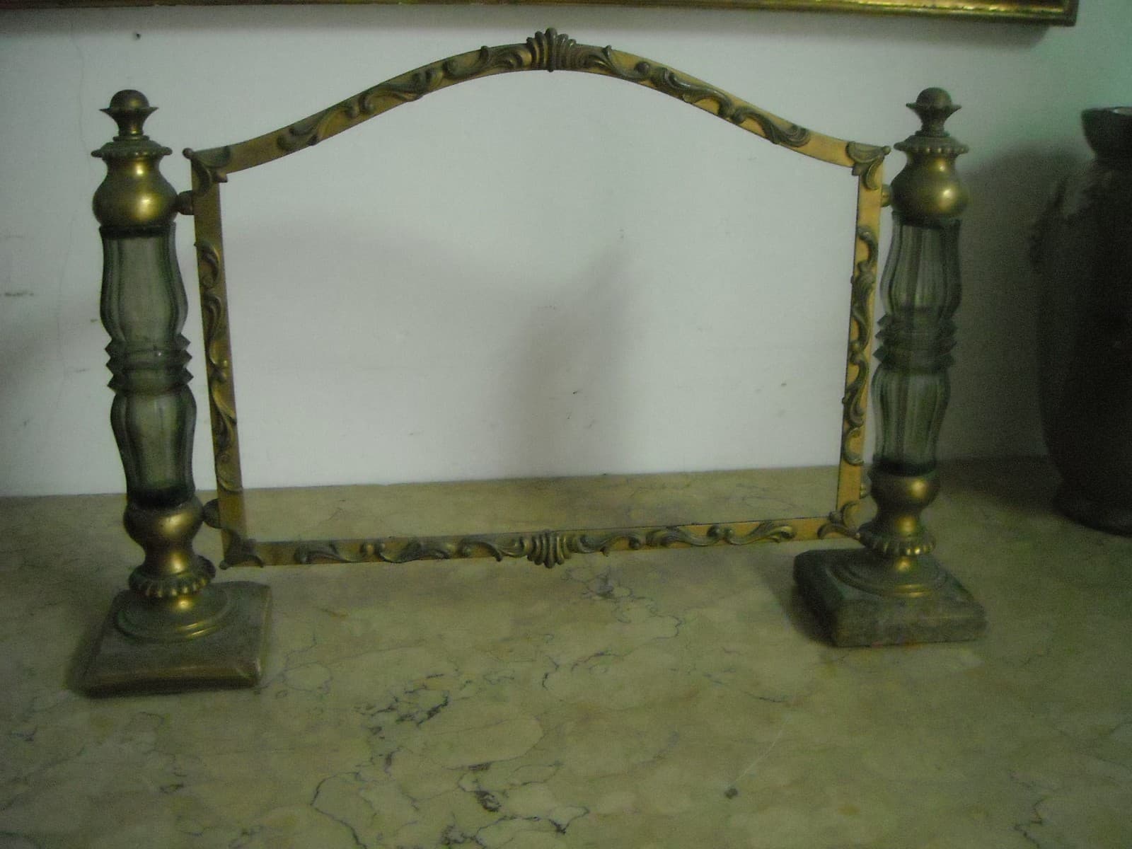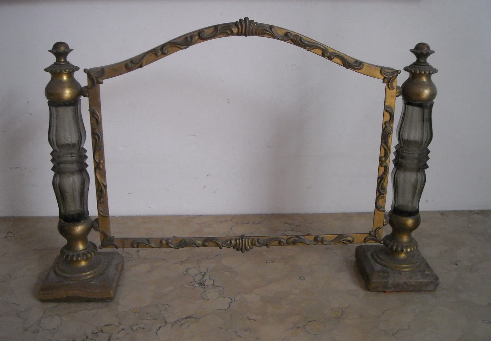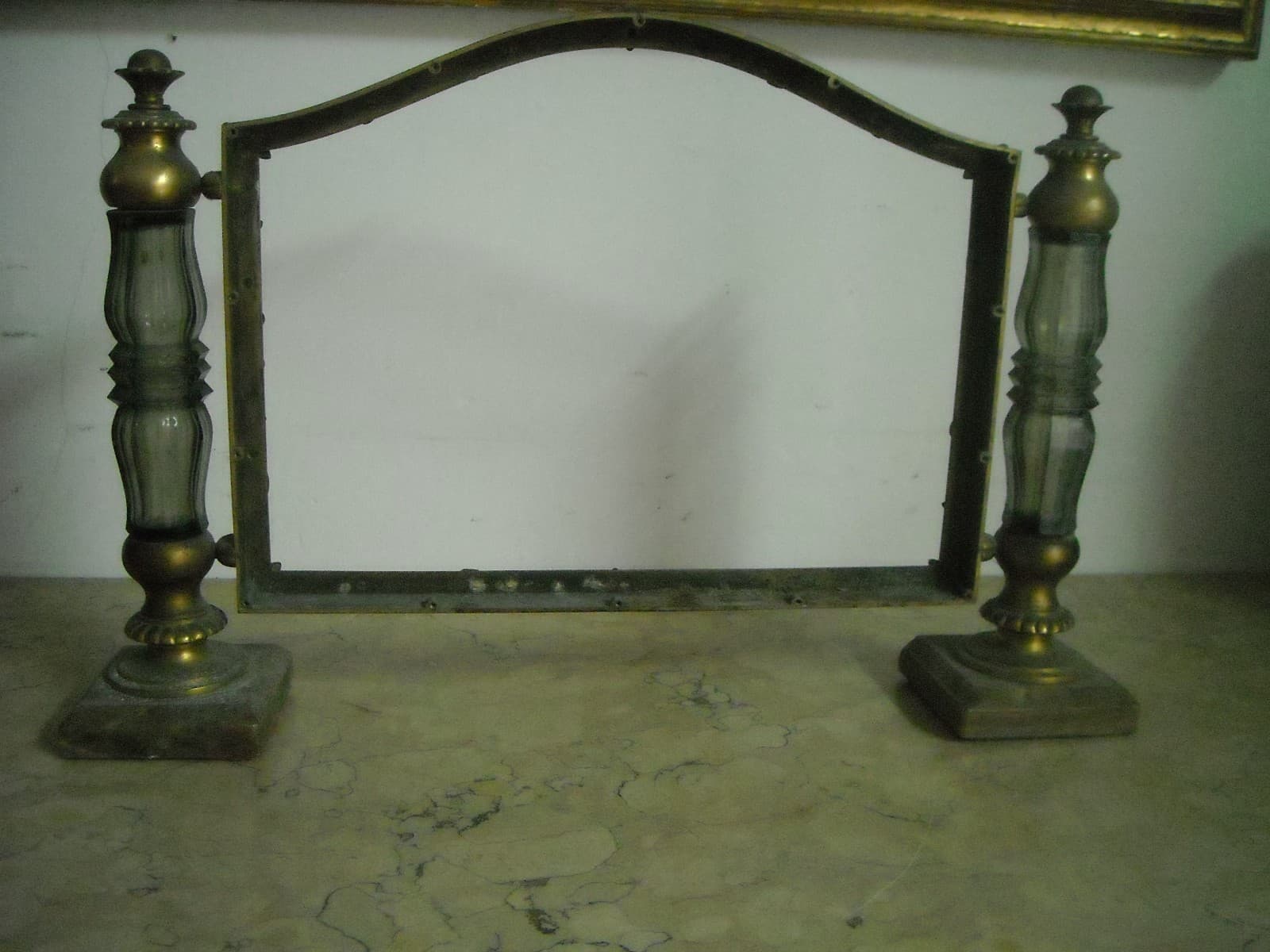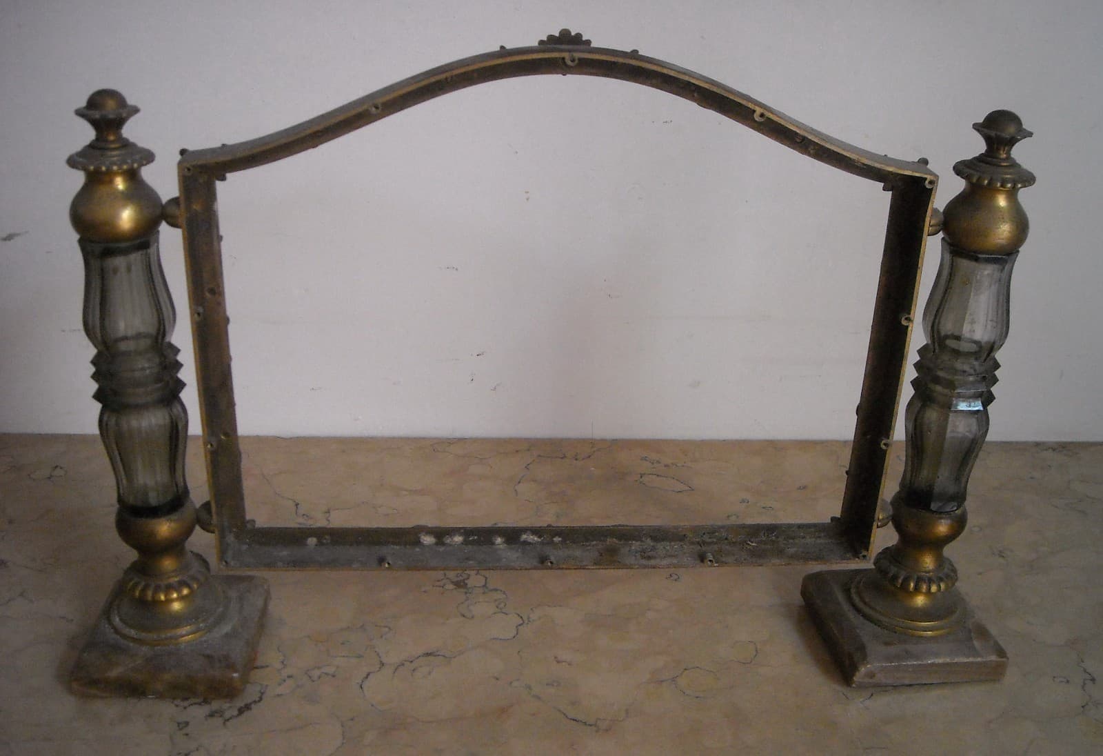 Cornice d'Epoca In Ottone Dorato Con Inserti In Vetro E Basi In Marmo