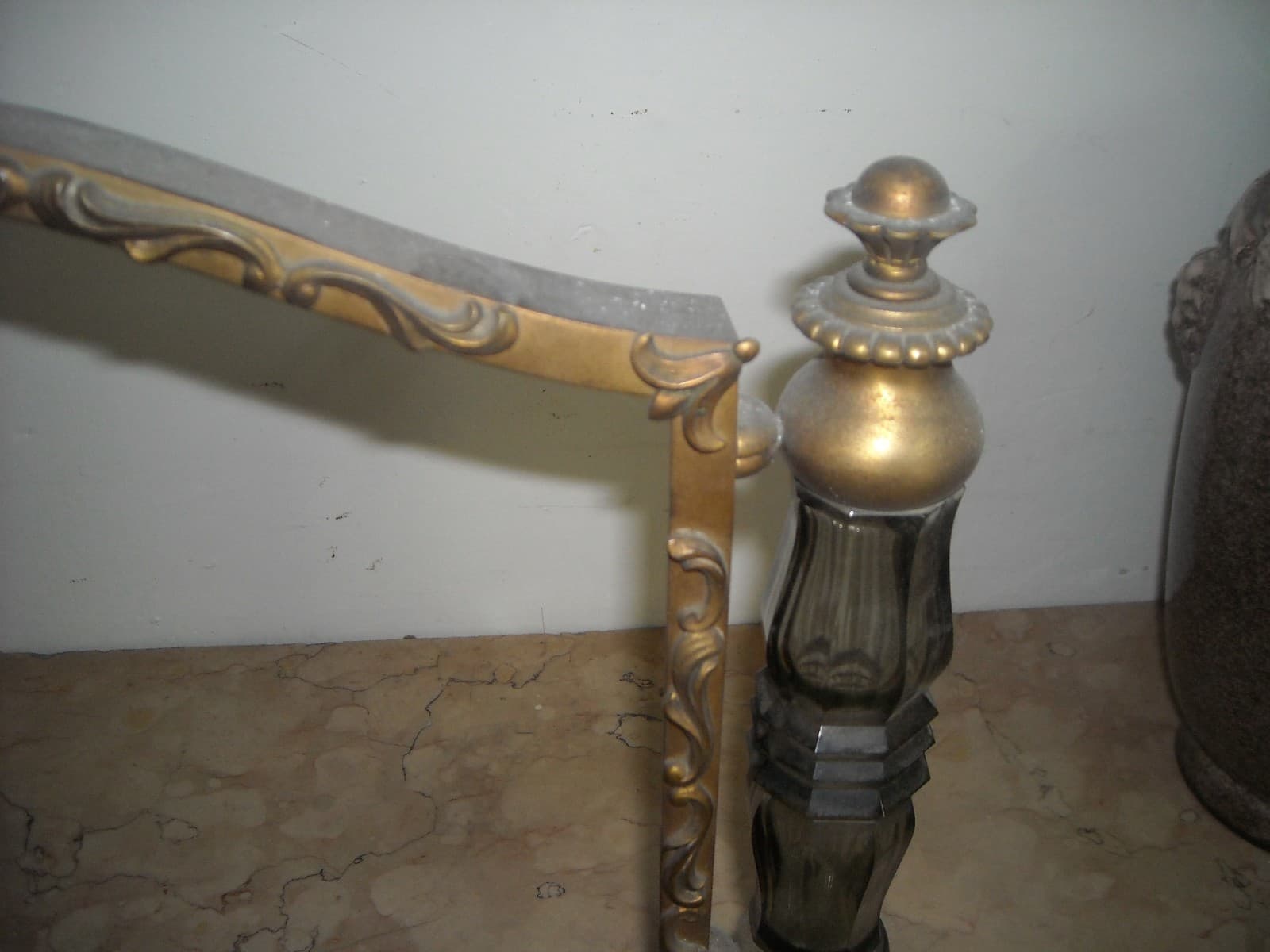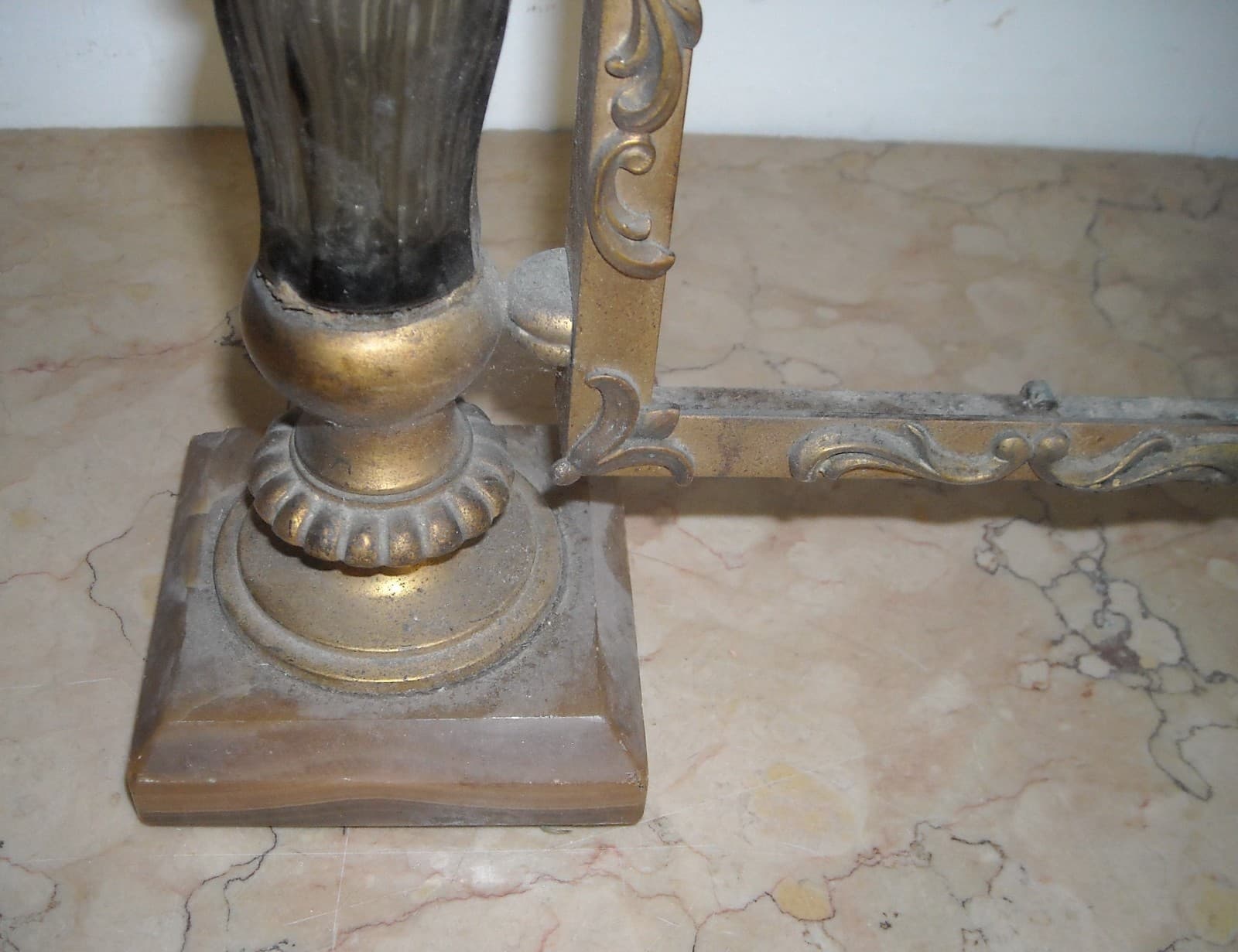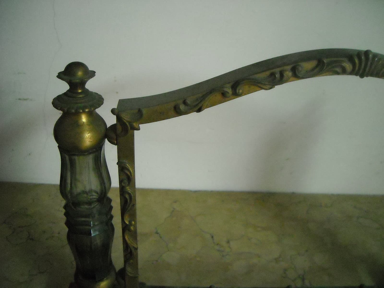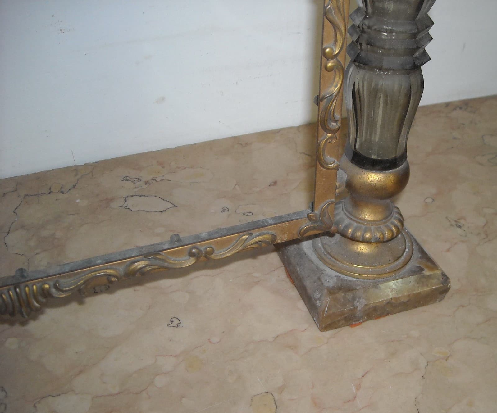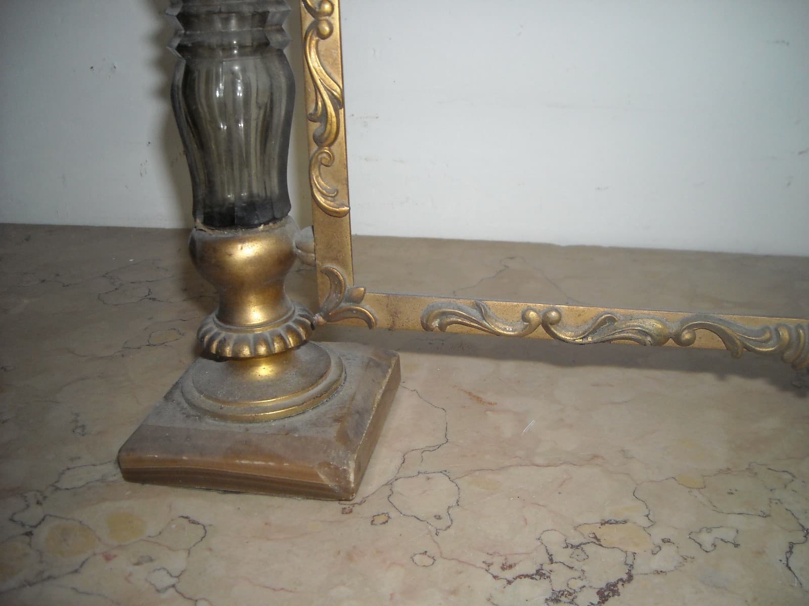 Cornice d'Epoca In Ottone Dorato Con Inserti In Vetro E Basi In Marmo