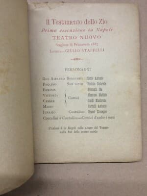 Teatro E Musica A Napoli: Il Testamento Dello Zio, Impresa Staffelli, Galassi, Golisciani