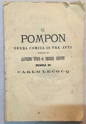 Il Pompon: Opera Comica In Tre Atti Duru, Chivot, Lecocq (Napoli, 1878)
