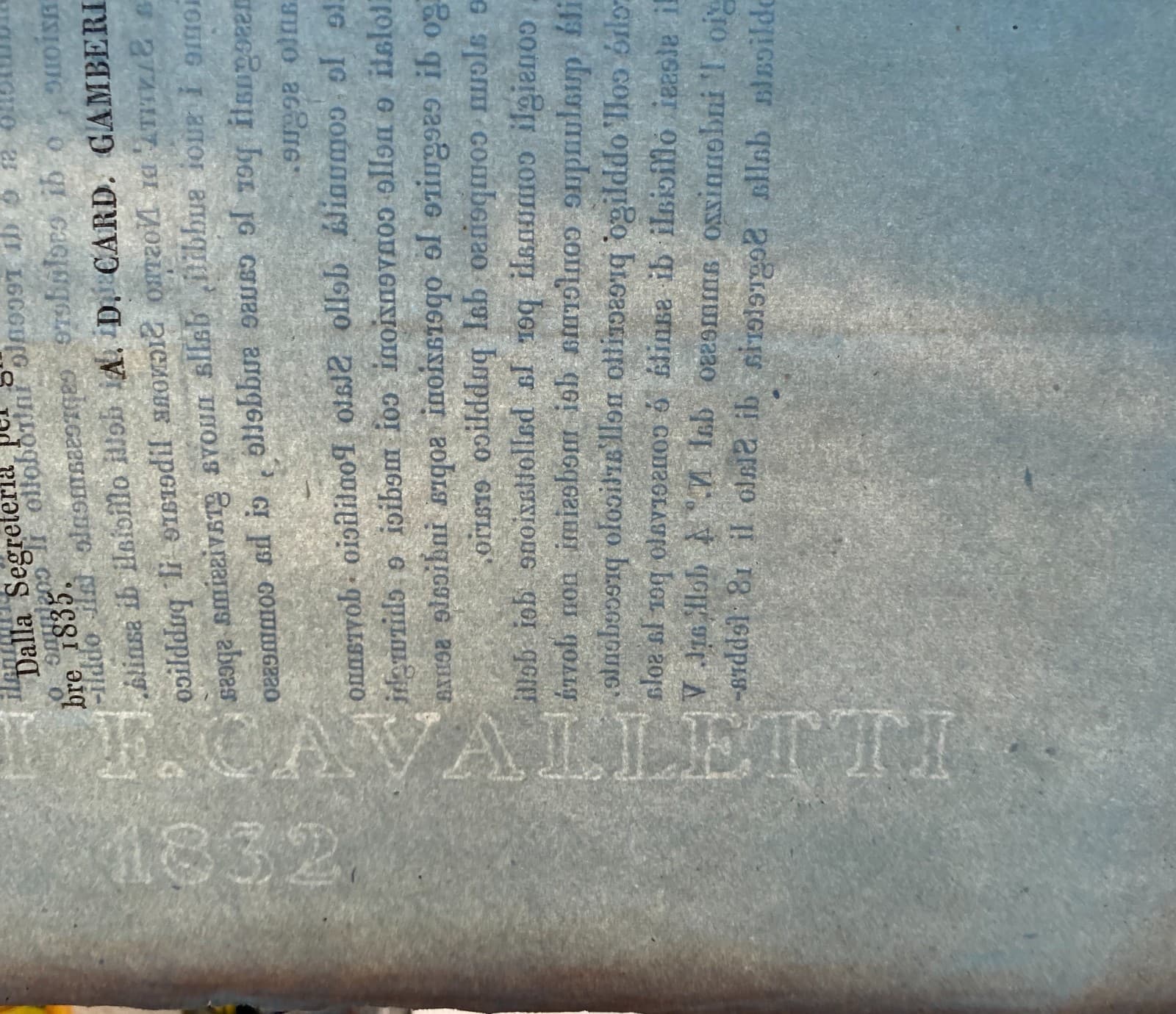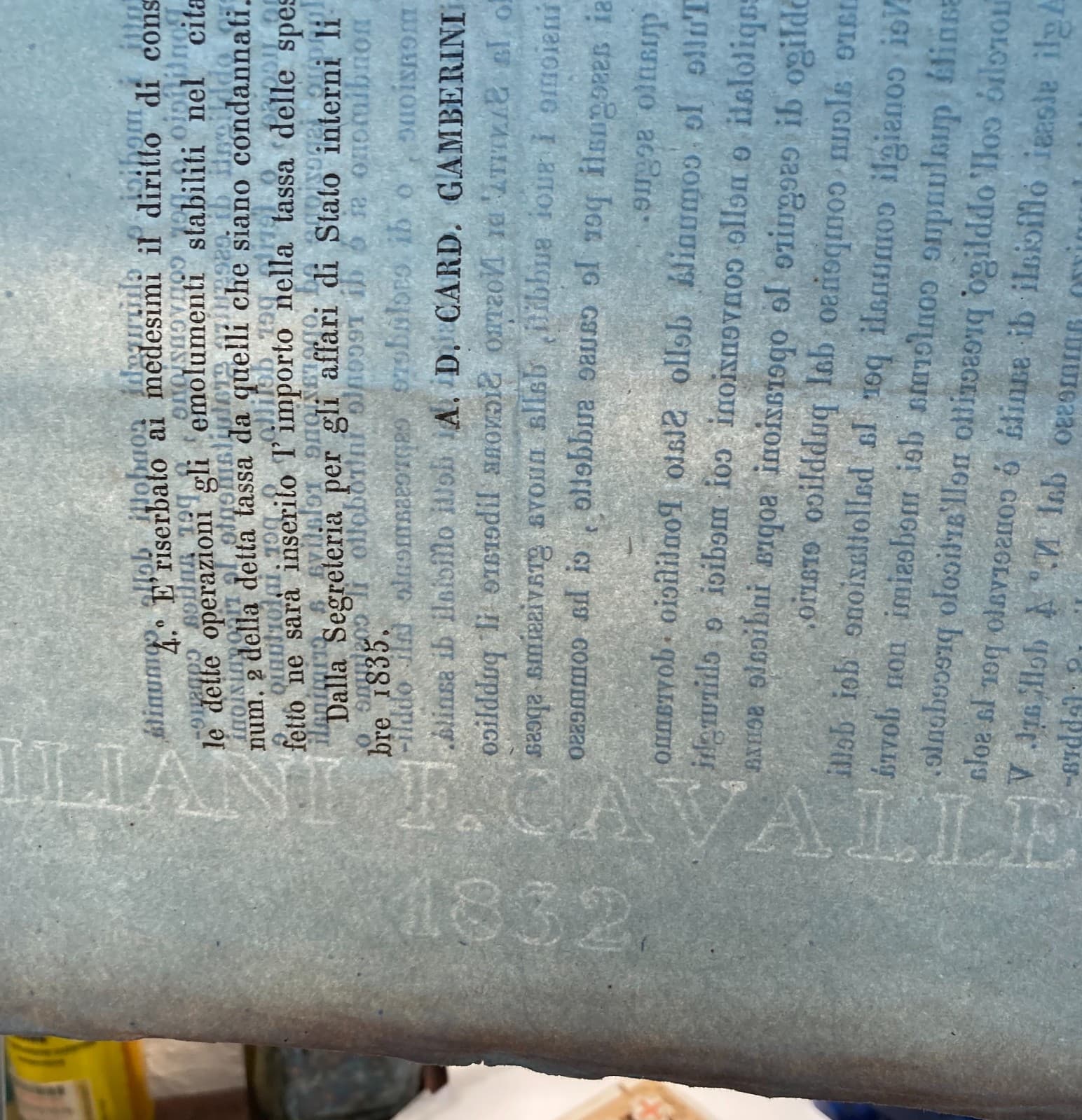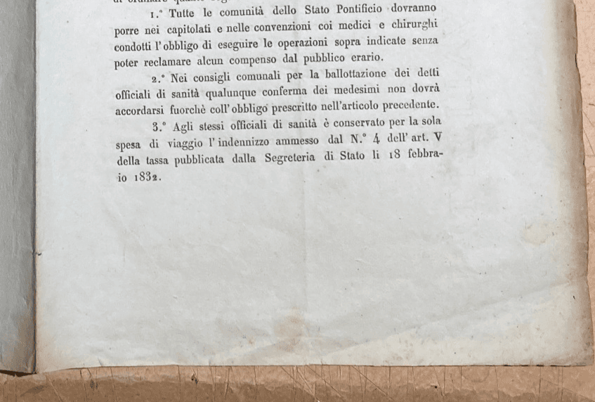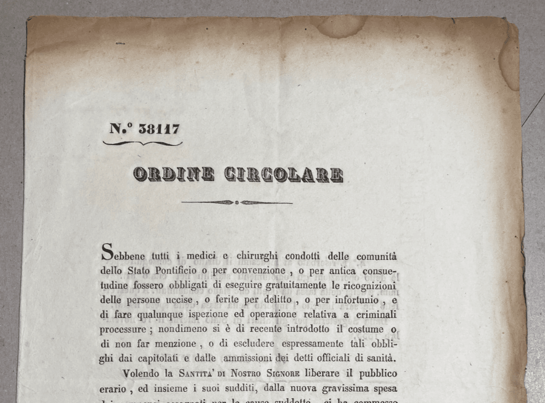 Medicina, Sanità E Regolamentazione Medica Nel 1835: Foglio Volante Del Cardinale Gamberini Su Carta Miliani