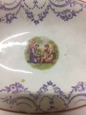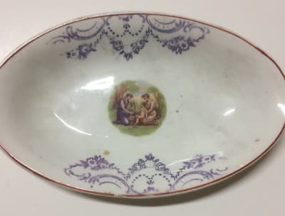Piatto Ovale In Porcellana Con Decoro Floreale Liberty E Scena Mitologica