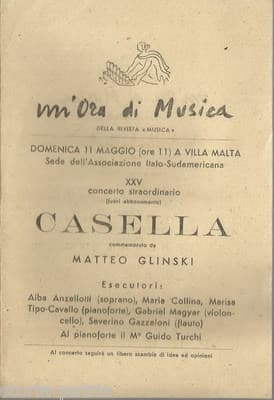 Teatro E Musica: Roma, Villa Malta. Concerto Casella, Glinski, Gazzelloni, Turchi