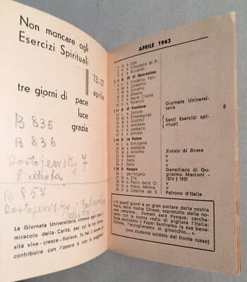 Calendario Studentesco, Università Cattolica Del Sacro Cuore, Milano, 1942 1943