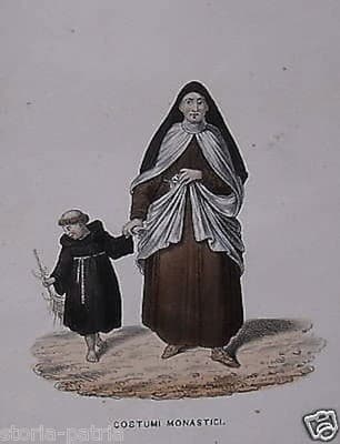 Costumi d'Epoca: Monachesimo. Antica Stampa Dell'800