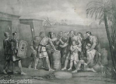 Sutera Antica Scena Biblica, Egitto: La Tazza Nel Sacco Di Beniamino. Antica Stampa