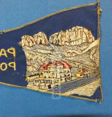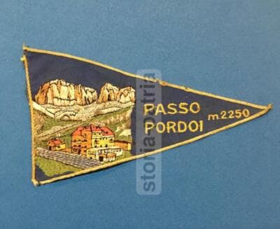 Passo Pordoi. Bandierina Ricamata Pubblicitaria Di Albergo Montano