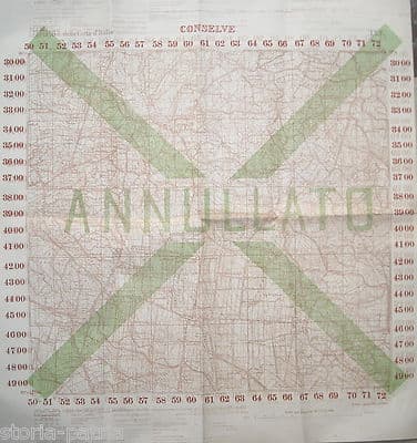 Grande Guerra: Trentino, Antica Mappa Topografica. Rovereto, Conselve. Rarità, 1917
