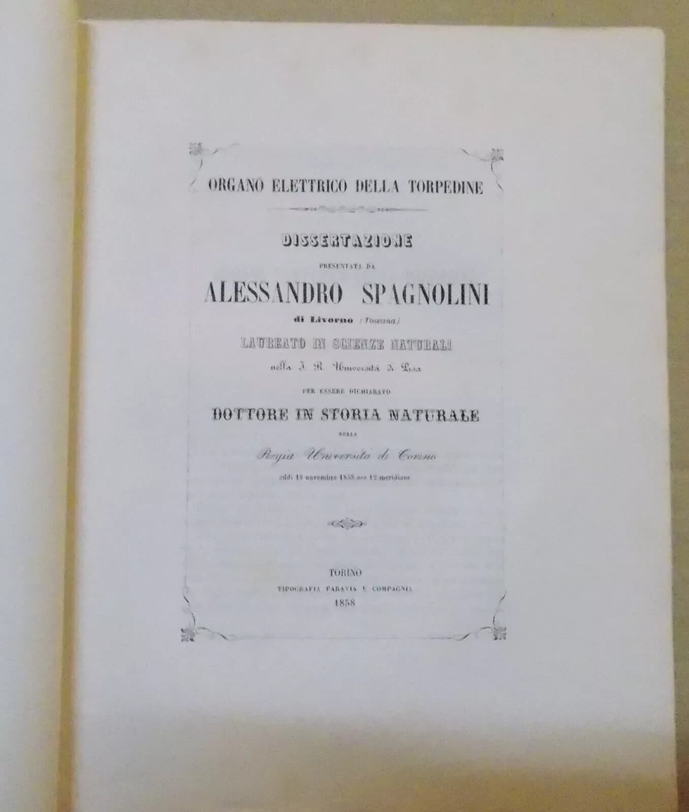 Storia Naturale: Zoologia, Pesci, Fisica, Elettricità Della Torpedine Spagnolini