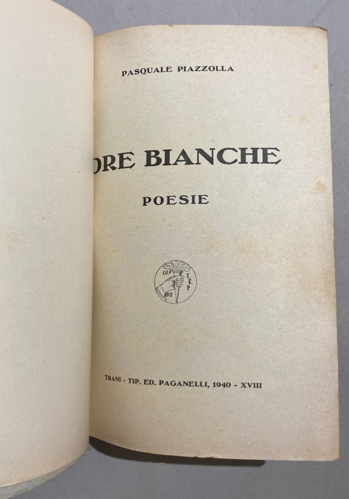 Pasquale Piazzolla, Ore Bianche. Edizione 1940 Con Dedica Autografa