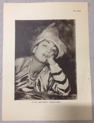 Mosè Bianchi, "Pagliaccio Stanco", Antica Stampa d'Arte