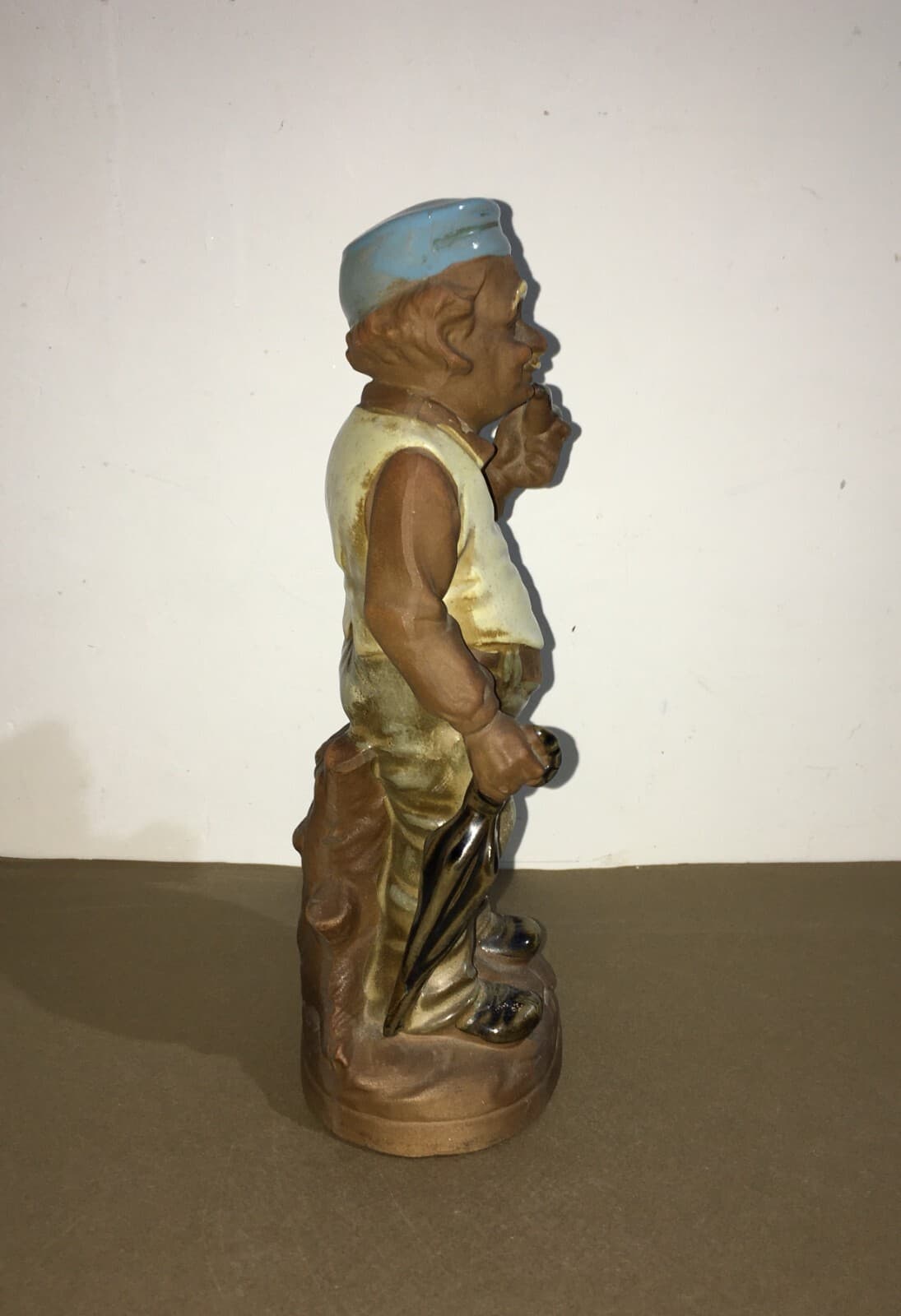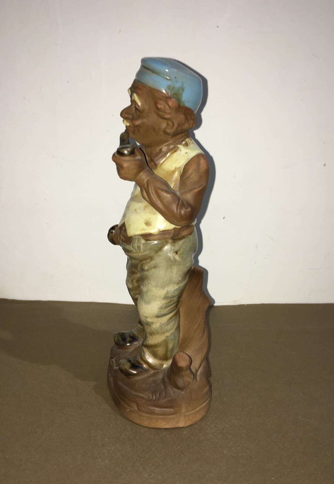 Napoli, Capodimonte, Scultura In Ceramica Policroma, Anziano Con Pipa