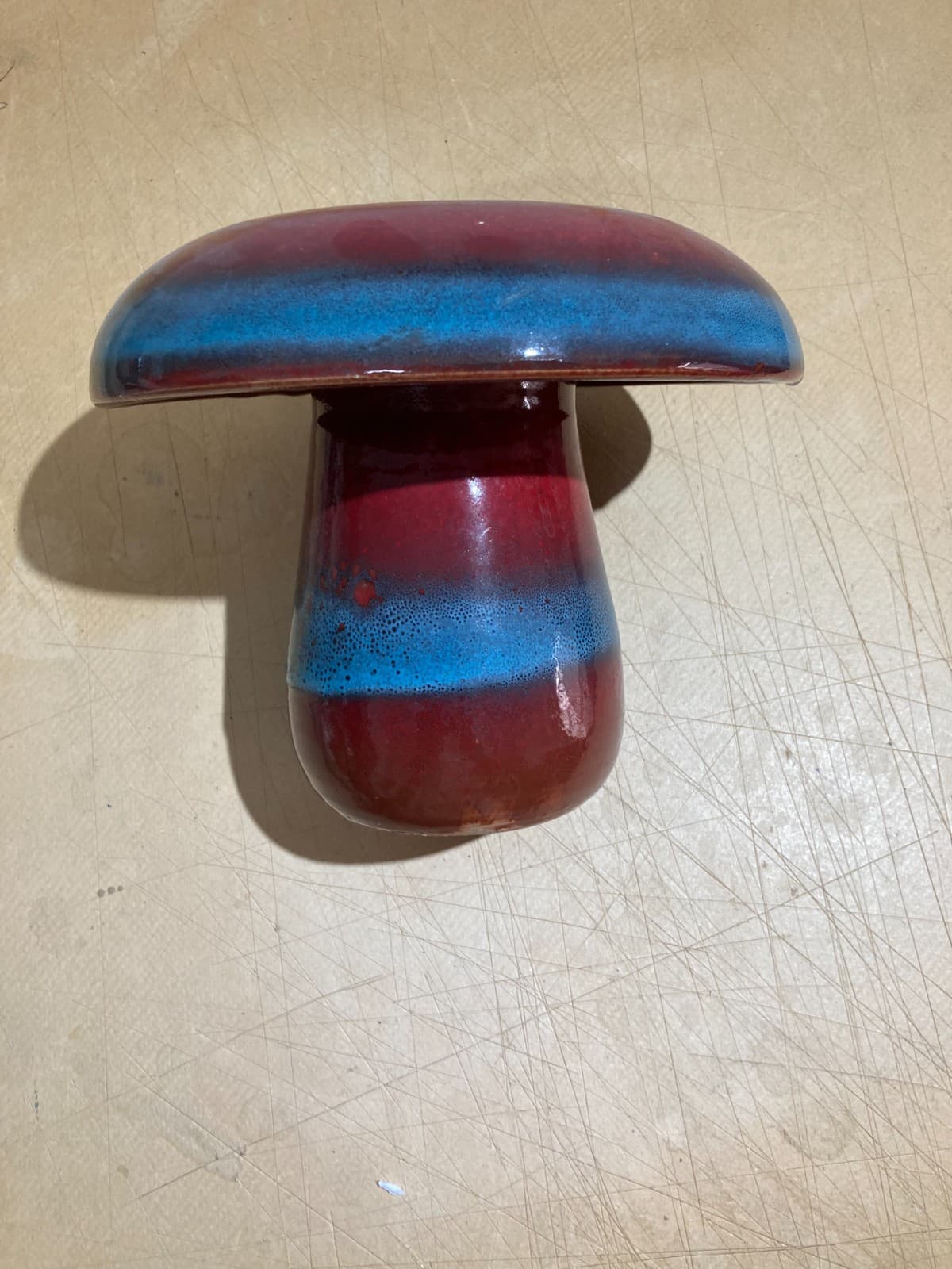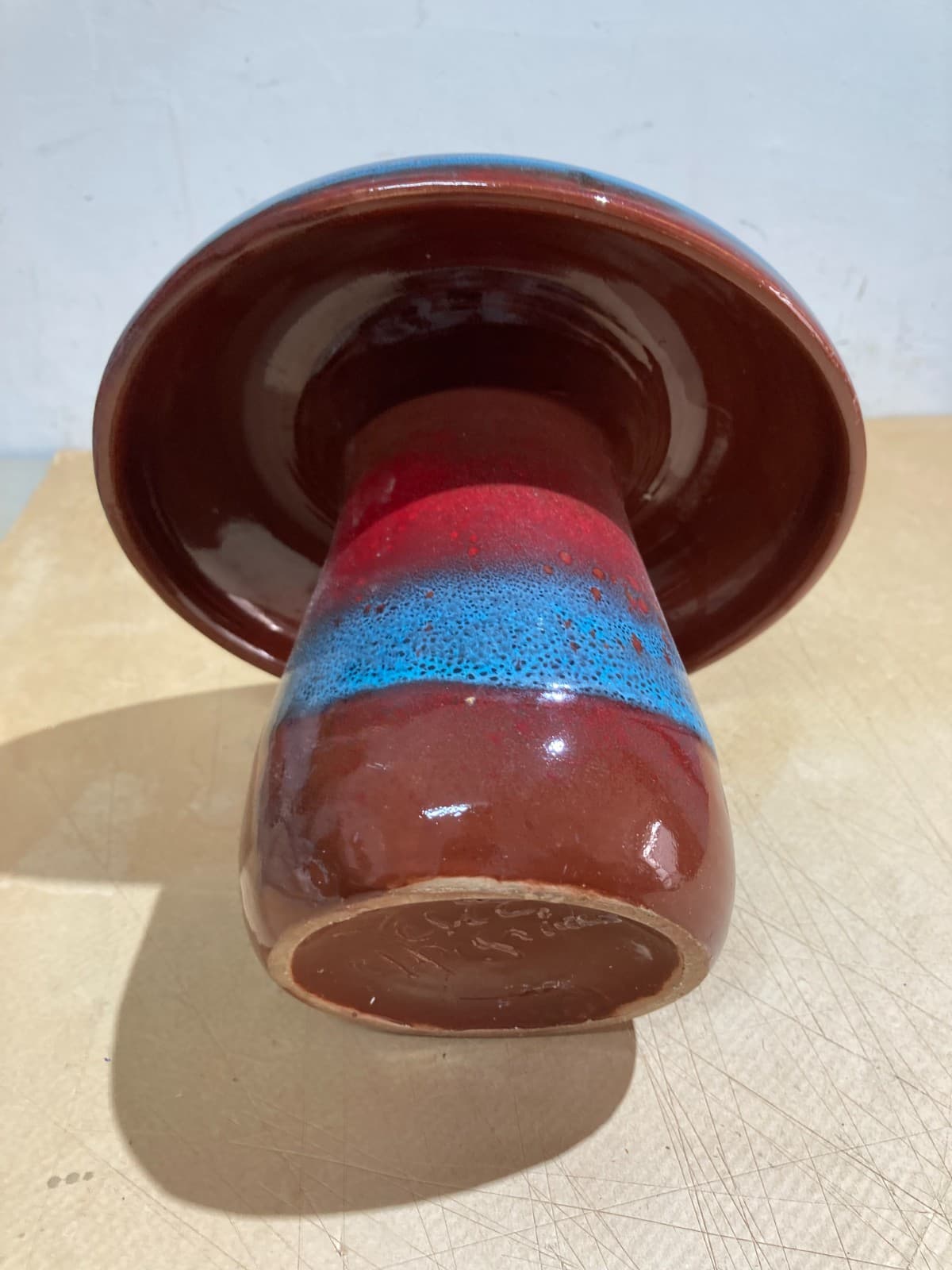 Vaso A Forma Di Fungo In Ceramica Policroma, Seconda Metà Del '900