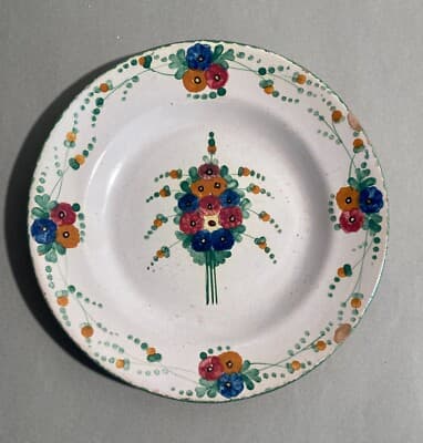 Antica Maiolica Napoletana: Piatto d'Epoca Con Decori Floreali (ceramica Da Restaurare)