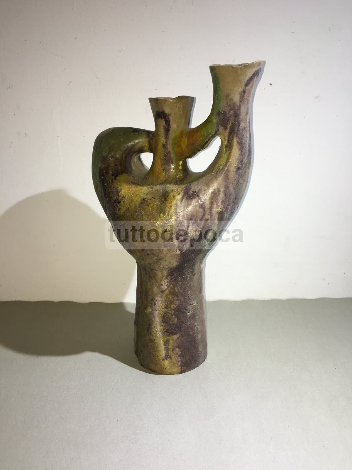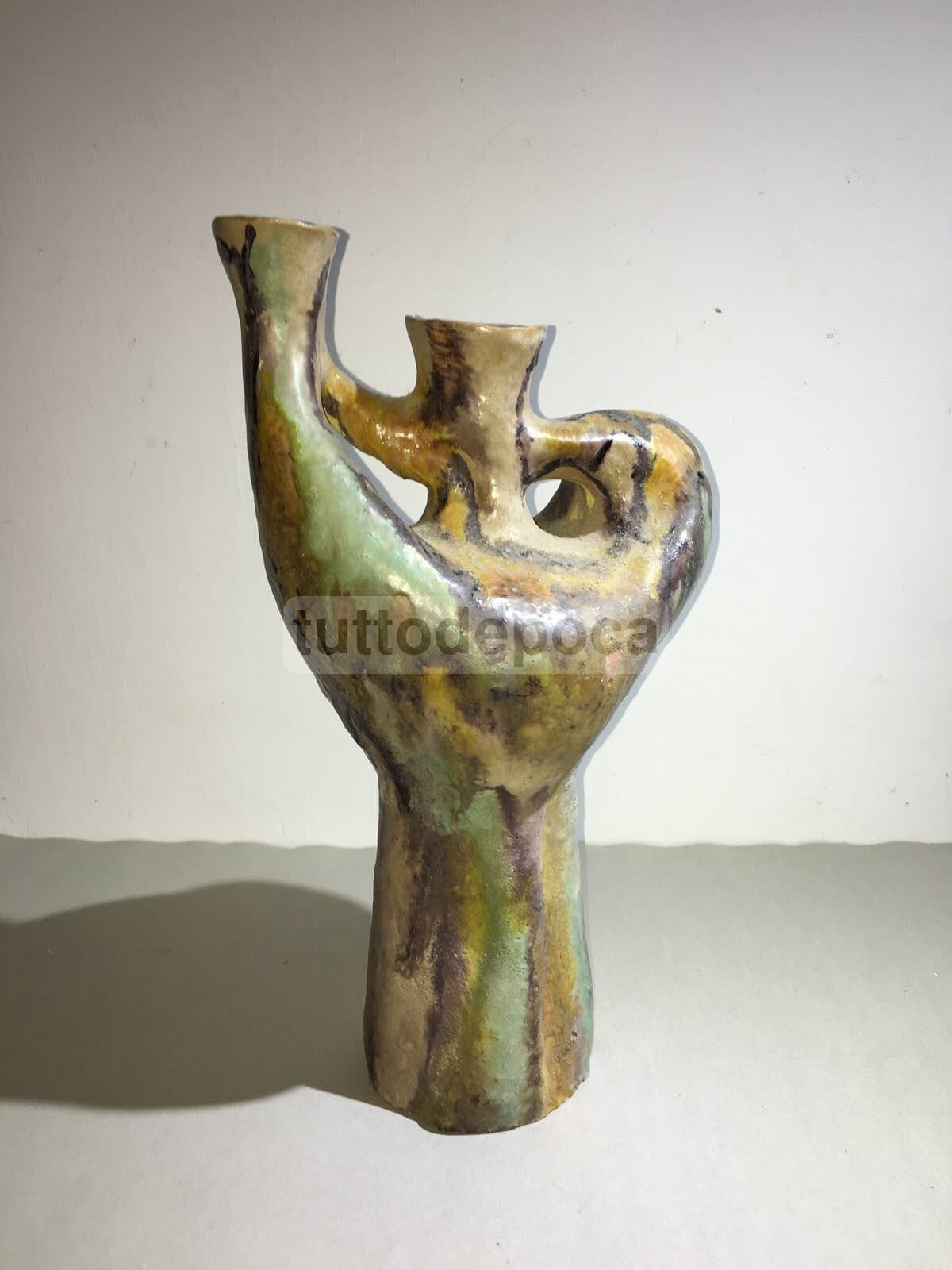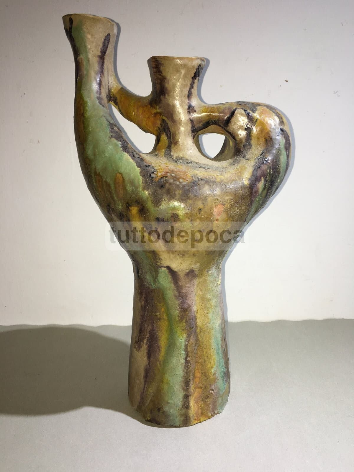 Vaso In Ceramica Artistica, Design Scultoreo Policromo, 1950 Circa
