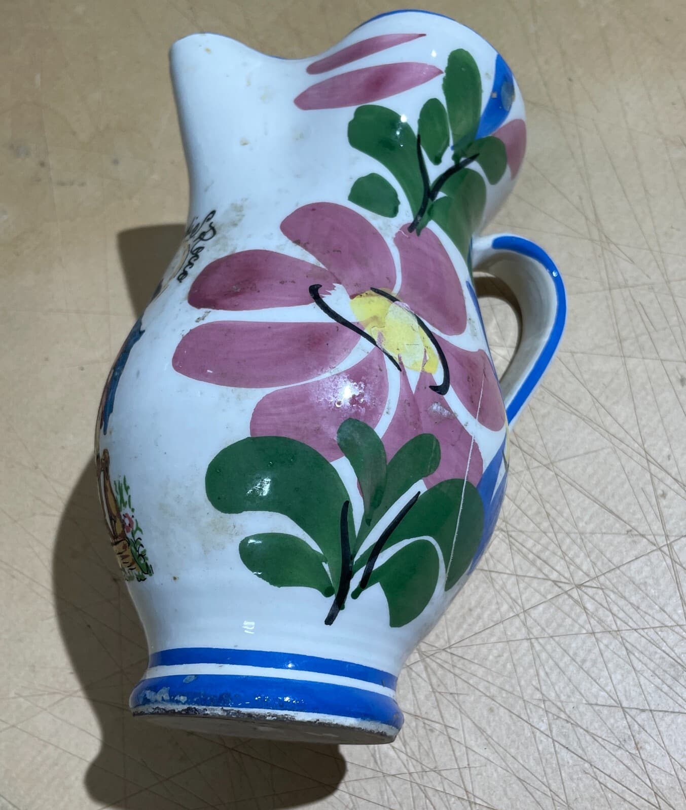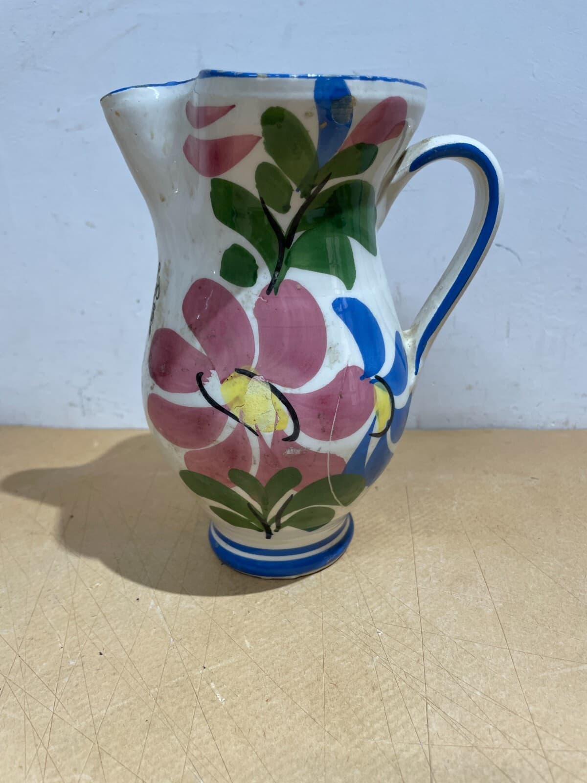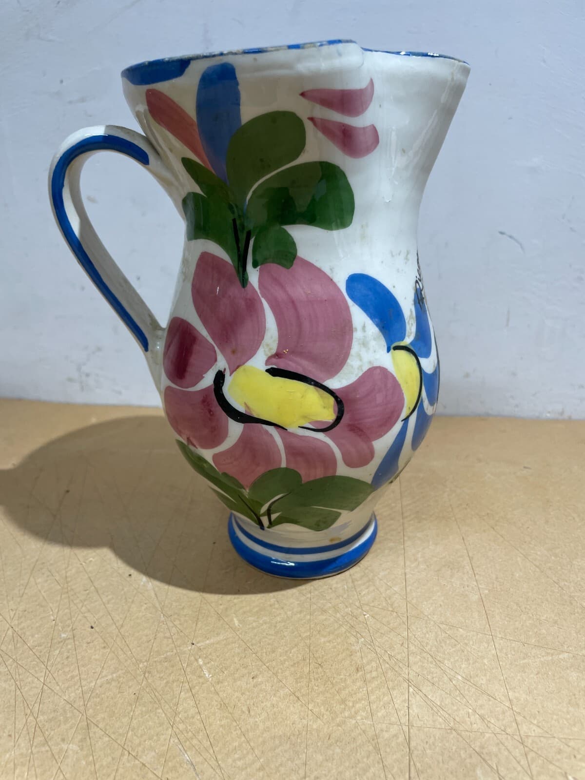 Arte Popolare Meridionale, Puglia, Grottaglie, Antico Boccale Da Vino O Acqua Decorato