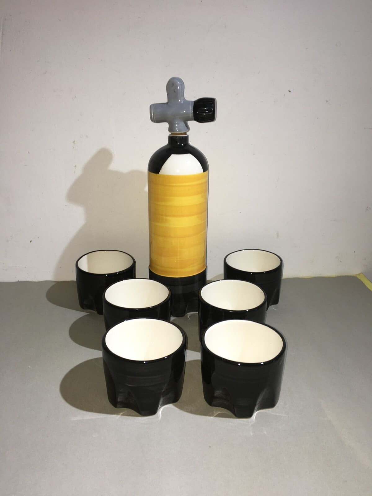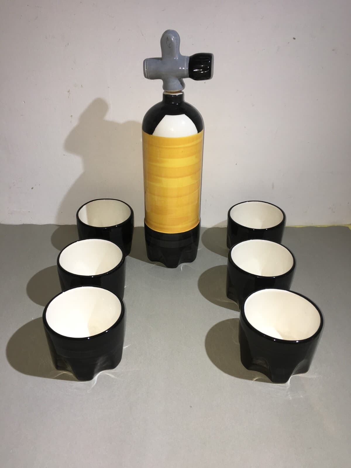 Ceramiche Da Collezione Bottiglia E Sei Bicchieri SCUB ART Ustica Diving Resort