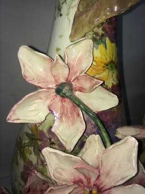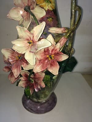 Grande Vaso In Ceramica Con Decori Floreali Mollica, Napoli, Epoca Liberty