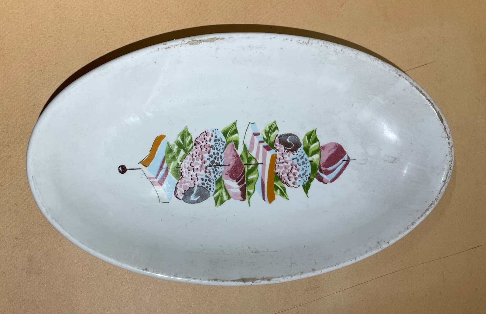Cucina: Piatto Ovale In Ceramica Con Spiedino Di Carni
