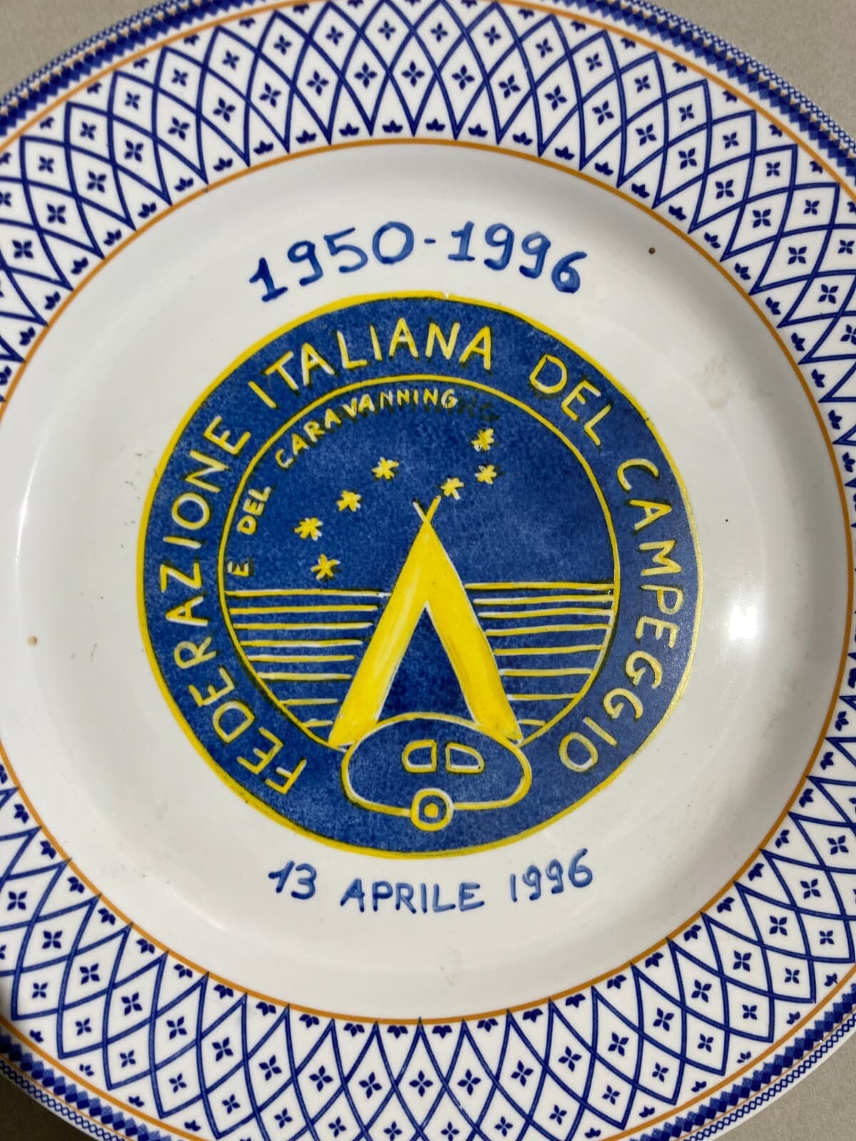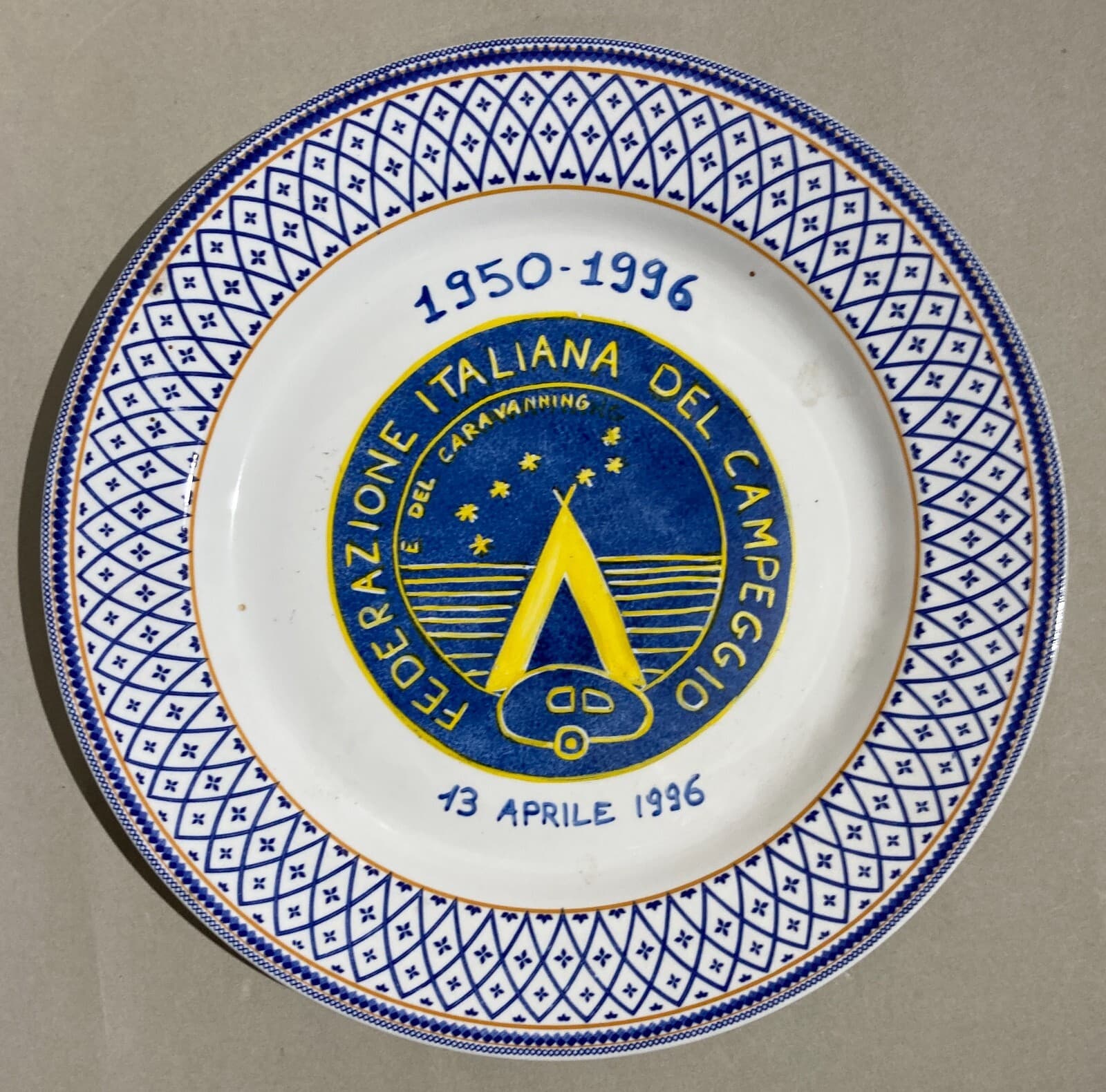 Piatto In Ceramica Pubblicitaria Federazione Italiana Del Campeggio, 1996