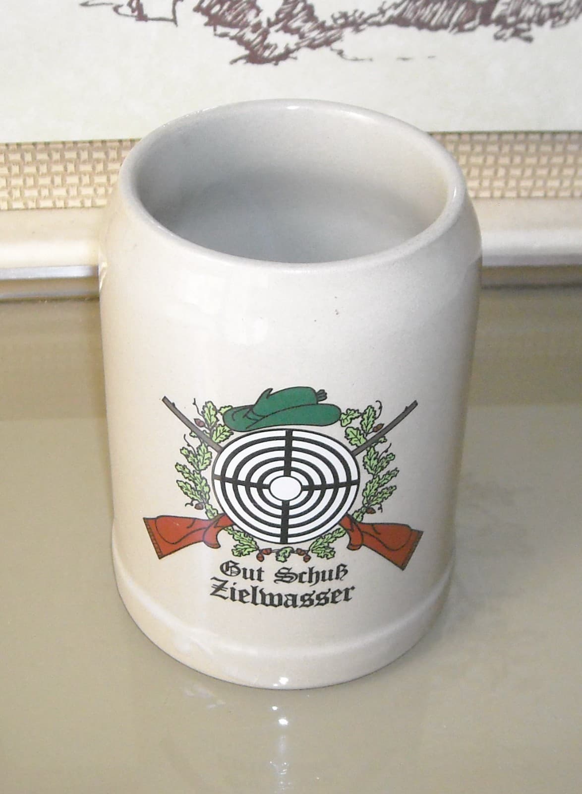 Germania: Boccale In Ceramica Pubblicitaria Con Motivi Di Caccia E Tiro A Segno