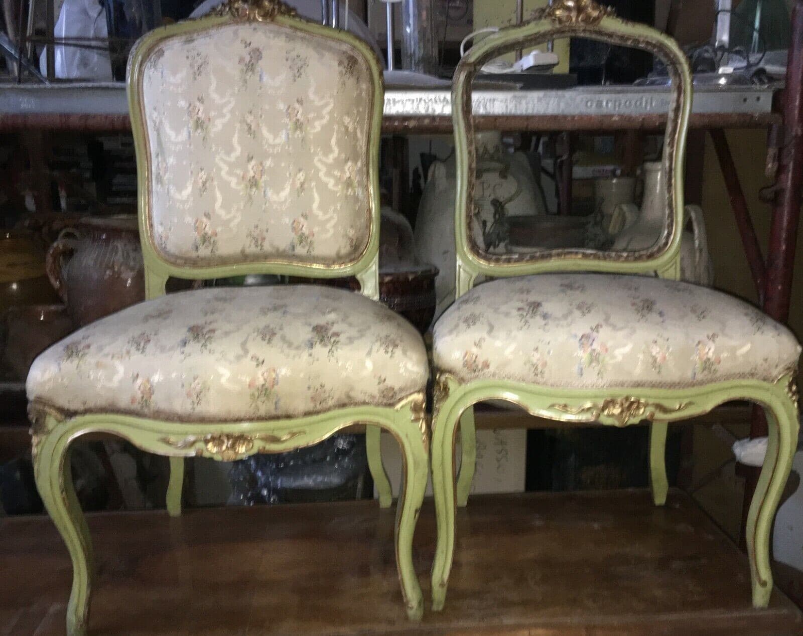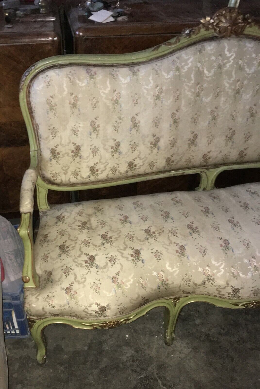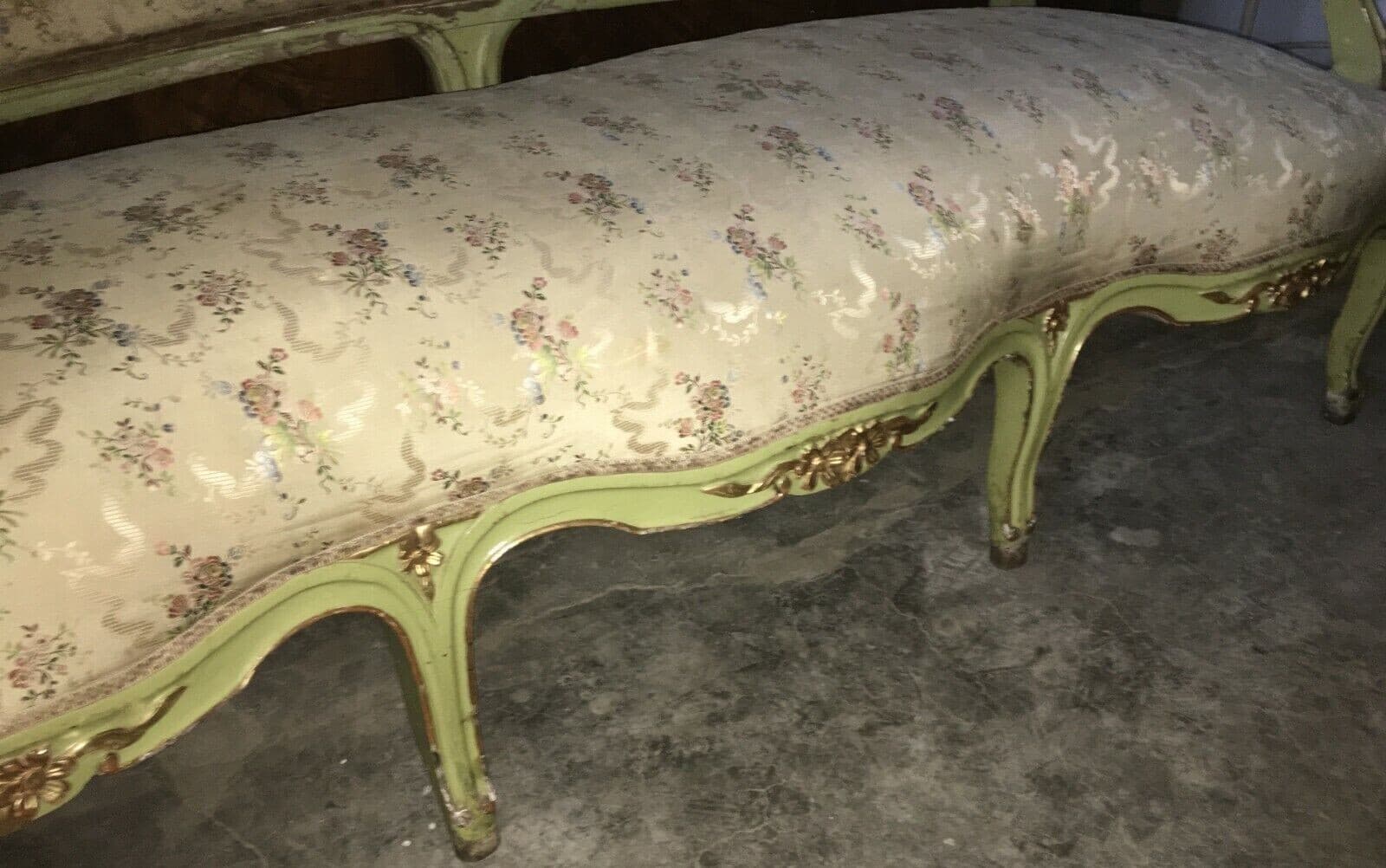 Decorativo Antico Salotto: Divano E Due Sedie In Legno Laccato E Dorato Del XIX Secolo