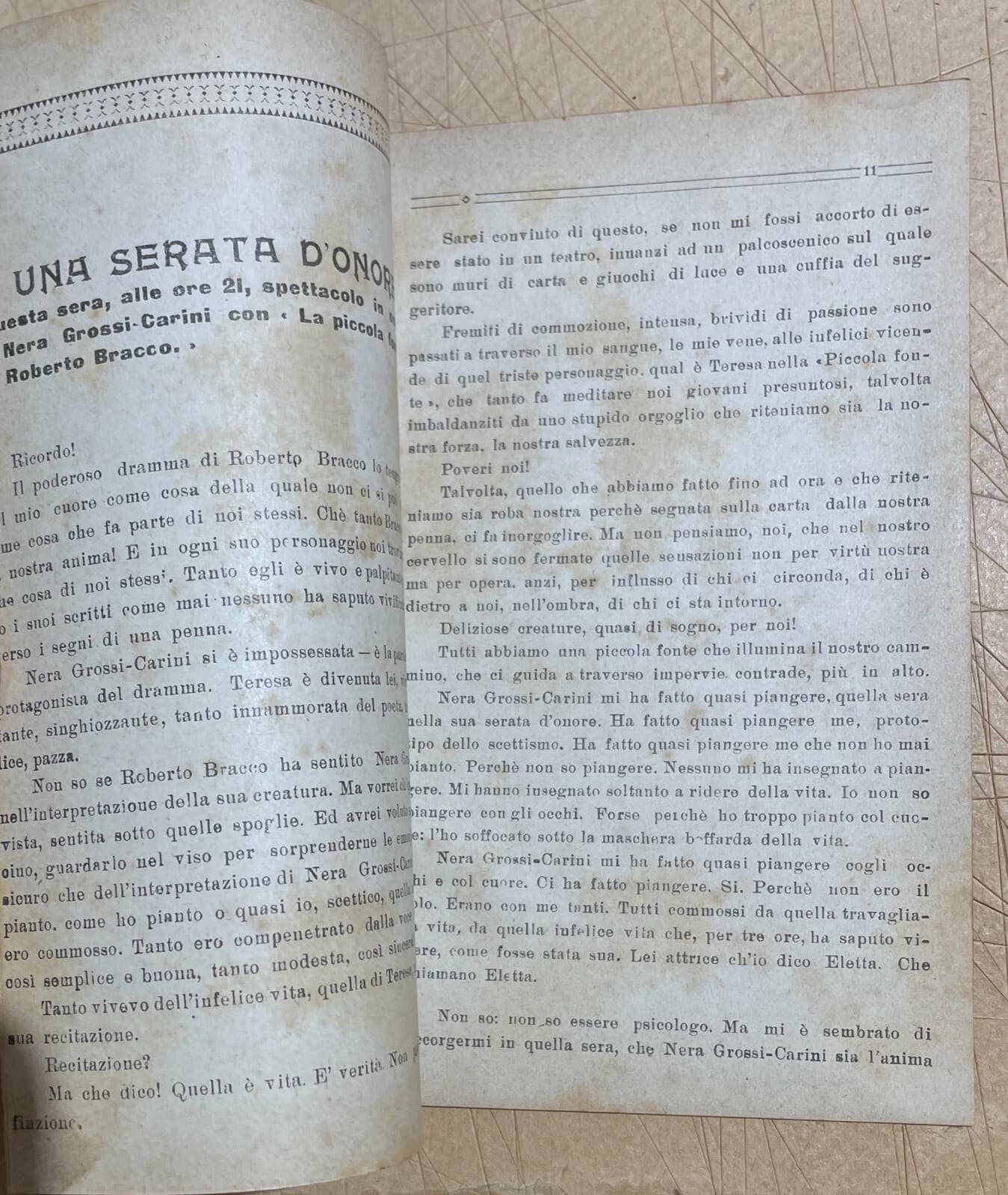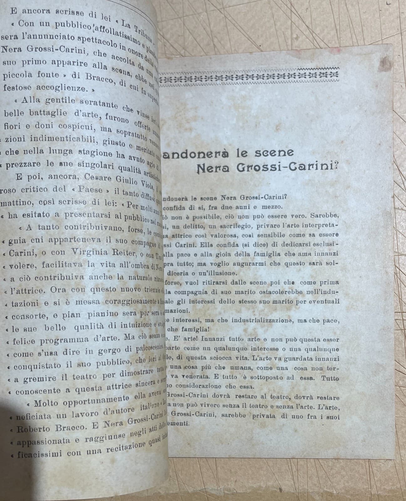 Teatro: L'Attrice Nera Grossi Carini. Antica Edizione Siciliana, Basile, 1922