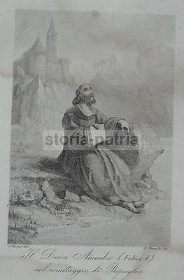 Ermitaggio Savoia Ripaglia: Duca Amedeo (Felice V). Antica Stampa, Mazza Stanghi, '800