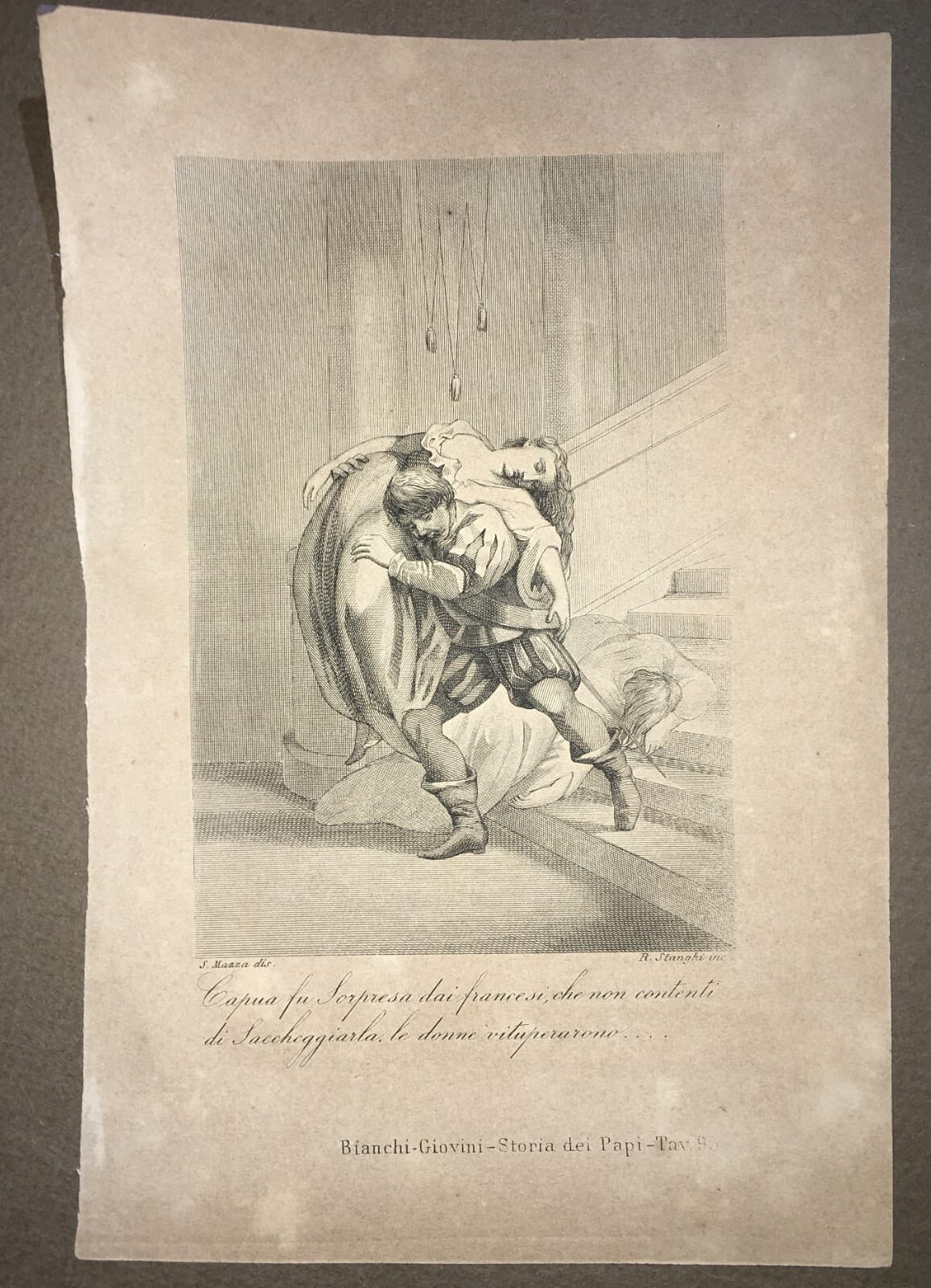 Capua: Saccheggio Dei Francesi E Ratto Delle Donne. Antica Stampa Di Mazza E Stanghi