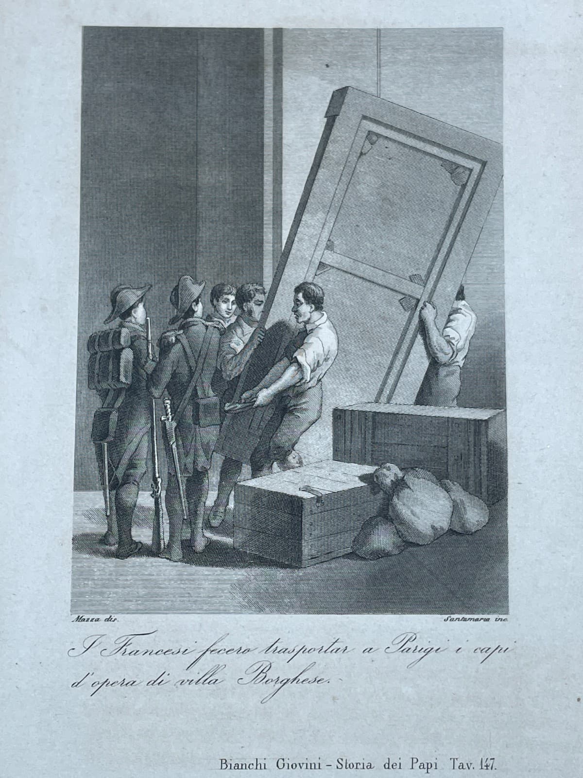 I Francesi E Le Opere d'Arte Di Villa Borghese. Antica Stampa. Incisore Santamaria