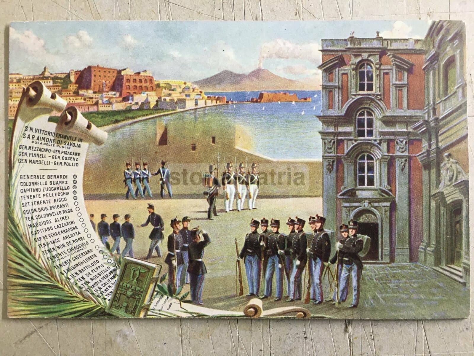 Militaria, Collegio Militare, Napoli: Veduta Panoramica Con Vesuvio E Militari, Cartolina Richter