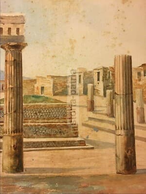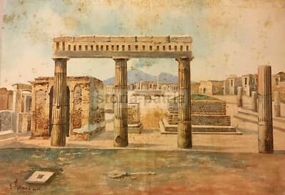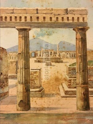 Pompei, Antiche Rovine E Vesuvio: Veduta Panoramica Firmata