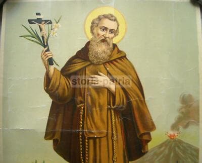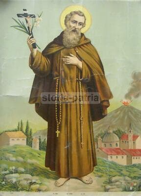 Puglia, Grottaglie. Antica Stampa Devozionale: Napoli, Vesuvio, Gesuiti, San Francesco De Geronimo, 1820 Circa