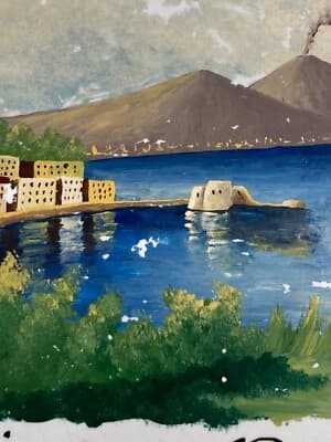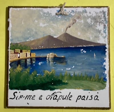 Golfo Di Napoli, Folklore, Veduta Panoramica, Mattonella Dipinta, Ceramica d'Epoca