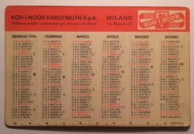 Scrittura, Cancelleria, Matite Koh I Noor Hardtmuth, Milano: Calendarietto 1964