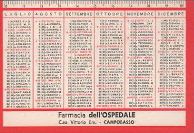 Molise, Campobasso: Medicina, Farmacia, Ipnotici. Calendarietto Da Collezione