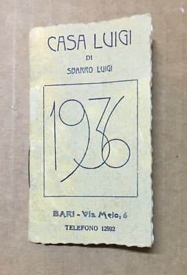 Antico Calendarietto Pubblicitario Casa Luigi, Bari, 1936 Cinema